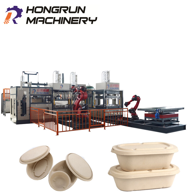 La máquina totalmente automática de cajas de comida de pulpa robótica es una línea de producción inteligente que integra moldeo de pulpa, secado, prensado en caliente, recorte, clasificación y empaquetado. Está diseñada específicamente para producir vajillas biodegradables de pulpa, como cajas de comida, bandejas y platos. A través de la tecnología de automatización robótica, se puede lograr una producción sin intervención humana desde las materias primas hasta los productos terminados, cumpliendo con los requisitos de protección ambiental, eficiencia y alta precisión.
